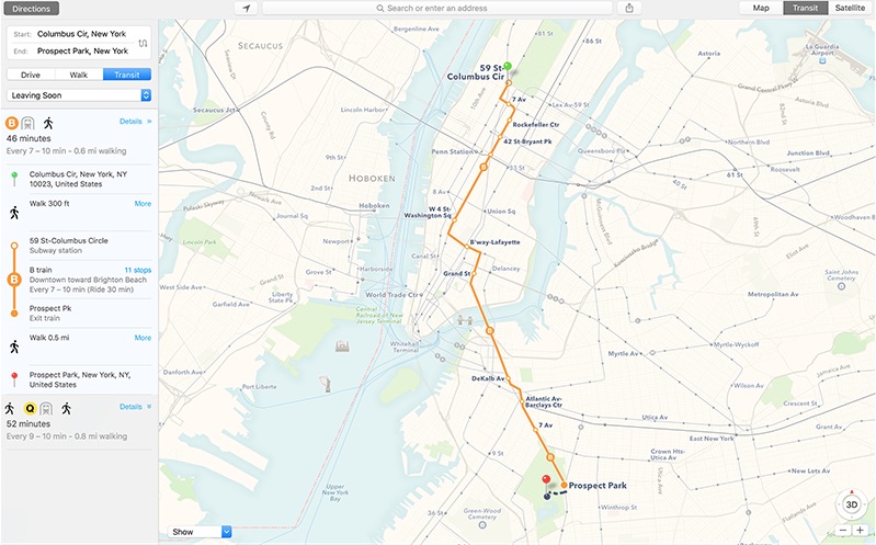Yine tıpkı iOS 9’da olduğu gibi, Mac’teki Harita uygulamasına da toplu taşım bilgilerini eklemiş Apple. Ancak bu özellik henüz sadece çok kısıtlı şehirleri destekliyor. ABD’de bile sınırlı şehirde çalışan bu özelliği kim bilir ne zaman Türkiye’de kullanabileceğiz acaba?