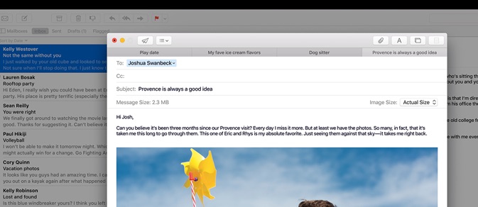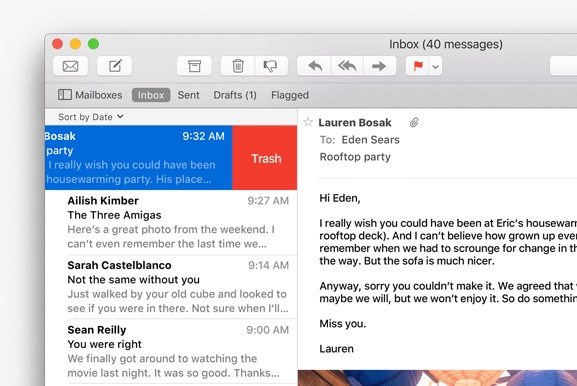 Her yeni OS X sürümünde iyileştirilen Mail uygulaması bu sürümde de atlanmamış. Daha iyi tam ekran desteği, kişi önerileri ve Trackpad hareketleriyle El Capitan’da Mail uygulamasını daha verimli kullanabiliyoruz.
