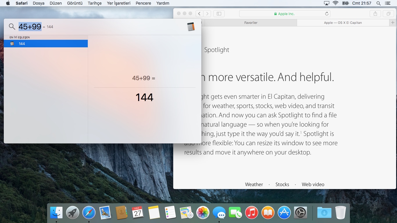 Spotlight’ın en sevdiğim yönü kolayca matematiksel hesaplamalar yapmak. Ancak bu hesabı yaparken bazen Spotlight ekrana biraz fazla büyük geliyor ve arkadaki pencereyi kapatıyor. Spotlight’ı küçültmek veya sağa sola kaydırmak da mümkün olmayınca bu çok can sıkıcı oluyor.
