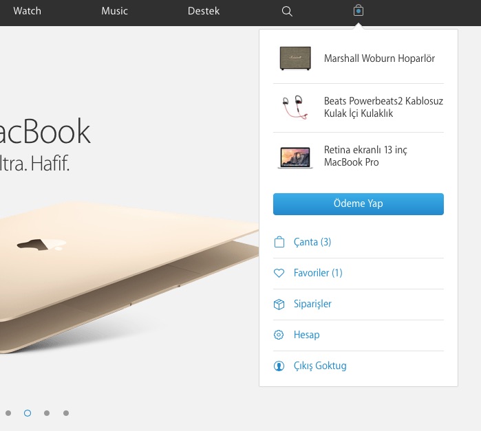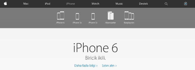 Böylece de Watch lansmanı ile birlikte iyice kalabalıklaşan Apple.com’un üst menüsü, “Store” sekmesinin kalkmasıyla (zaten Türkçe’ye de uymuyordu) ve bunun yerine en sağdaki çanta ikonuyla akıllı bir şekilde sadeleşmiş oldu.