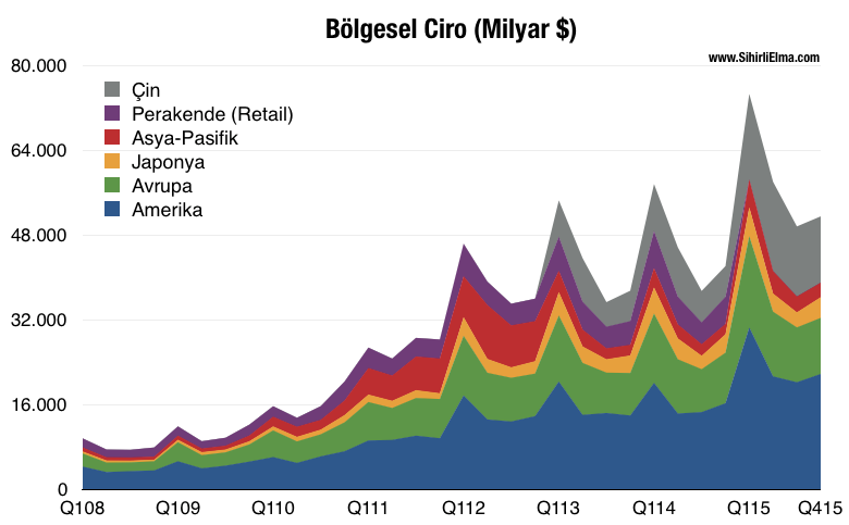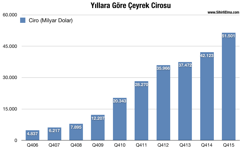Detaylara geçmeden önce küçük rakamsal özet paylaşmak gerekirse, Apple’ın 2015 finansal yılının tamamında cirosu 2014’e göre %28 artarak $234 milyara ulaşmış ve net kârı ise 54 milyar doları bulmuş.