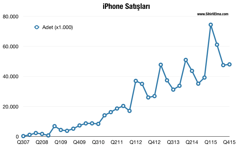 Apple sadece bu çeyrekte 48 milyondan fazla iPhone satarak, cirosunun %62’sinden fazlasının iPhone’dan gelmesini sağladı. iPhone satışlarını geçtiğimiz seneye göre %22 arttıran Apple, en fazla büyümeyi de %120 ile Çin’de yakaladı.