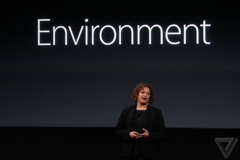 Apple’dan Lisa Jackson’ın (Vice President of environment, policy, and social initiatives) sahneyi Tim Cook’tan devraldığı dakikalarda şirketin çevreye duyarlılığı konusunda geldiği son noktayı ve bazı rakamları paylaştı.