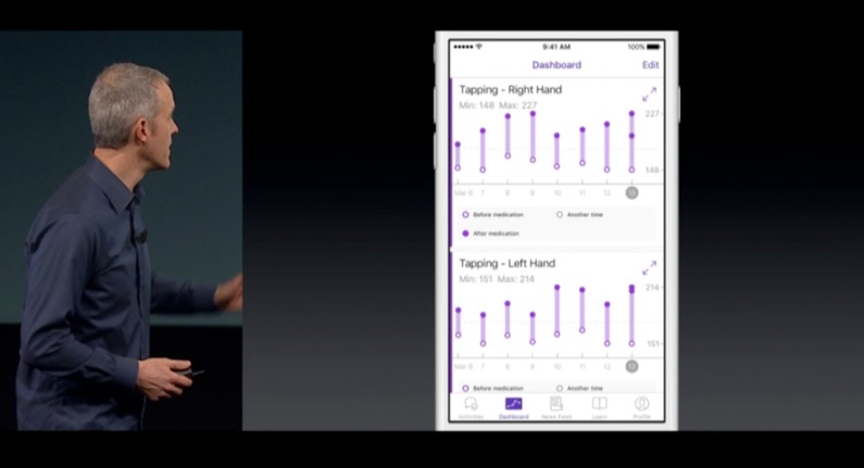 Apple’ın sunumunda CareKit’i ile kullanan uygulamanın Parkinson hastalığı üzerine olacağı paylaşıldı.