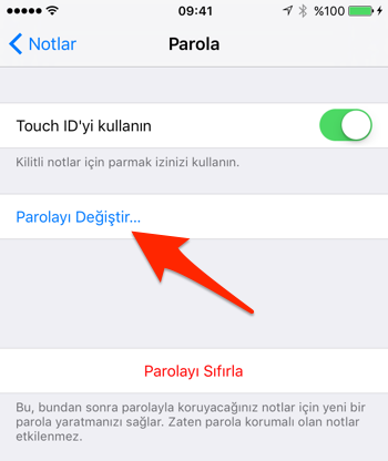- Ayarlar > Notlar > Parola’yı seçiyoruz