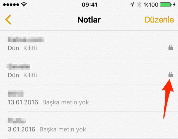 Parola ile korunmuş notların yanında bir kilit ikonu yerleştiriyor Apple. Böylece hangi notumuz korumalı, hangisi değil anlayabiliyoruz.