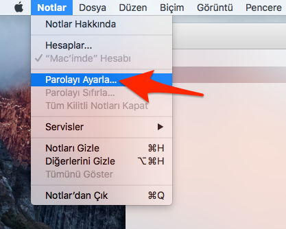 - Menü çubuğundan Notlar > Parola ayarla’yı seçiyoruz.