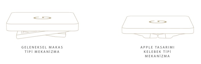 Yeni MacBook klavyesinde tuşların yüzeyi daha geniş, tuşlar daha alçak. Ayrıca yeni mekanizma sayesinde tuşlar sağa-sola daha az oynuyor, blok halinde inip çıkıyor.