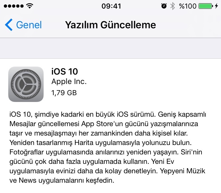 Daha sonra aşağıda paylaştığım yöntemle iOS 10 güncellemesini yükleyebilirsiniz.