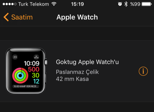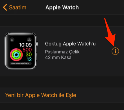 Eşlemeyi kaldırmak için iPhone’dan Watch uygulamasını açıyor, yukarıdan saatimizi seçiyor, yanındaki “i” ikonuna tıklıyor ve kırmızı ile yazan “Apple Watch eşlemesini kaldır” butonuna basıyoruz.