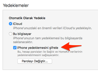 Yedekleme ve Geri Yükleme işlemlerini iTunes üzerinden yapıyorsak, yedeğimizi daima şifrelemeliyiz. Bunu yapmazsak ne yazık ki Sağlık, Aktivite ve kaydedilmiş şifreler geri yüklenmiyor.