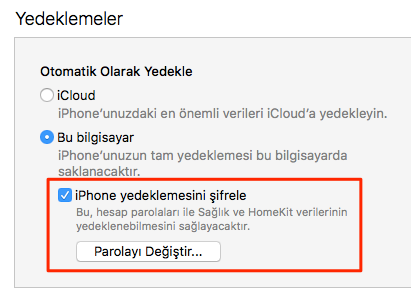 Eğer iTunes’a yedek alıyorsak mutlaka yedeği şifrelememiz gerekiyor. Aksi halde Sağlık, Aktivite veya şifrelerimiz yedeklenmiyor, ve yeni iPhone’a aktarılmıyor.
