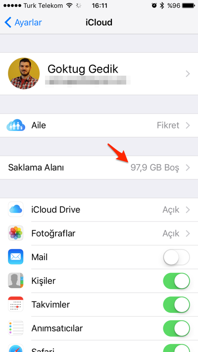 – Kişiler, Takvimler, Notlar, Fotoğraf Yayınım ve iCloud Fotoğraf Arşivi gibi zaten iCloud’da saklanan veriler