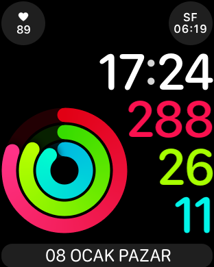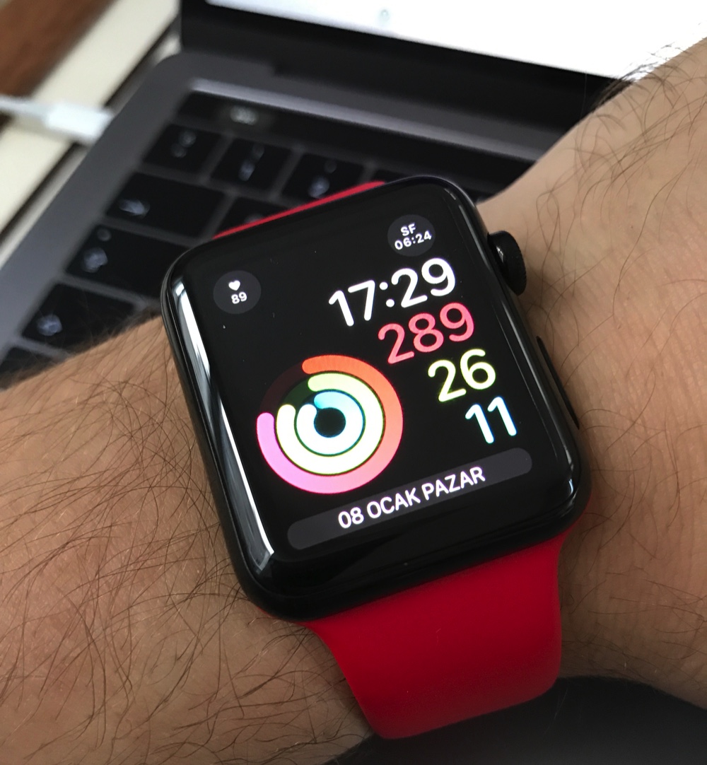 Hatta watchOS 3 ile birlikte yeni gelen kadranlardan bazıları ile birlikte aktivite verilerini daha fazla öne çıkartmak, sürekli gözümüzün önünde tutmak mümkün. Mesela benim kullandığım kadran şöyle:
