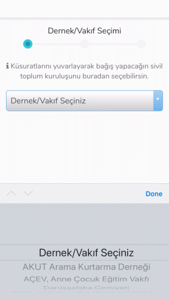 Sonraki ekranımızda ise harcamalarımızdaki küsuratın hangi dernek veya vakfa gideceğinin kararını veriyoruz. Bünyesinde oldukça fazla seçenek barındıran Yuvarla uygulamasının ise destek verdiği kuruluşlar şunlar; Arama Kurtarma Derneği (AKUT), Anne Çocuk Eğitim Vakfı (AÇEV), Darüşşafaka Cemiyeti, Doğal Hayatı Koruma Vakfı (WWF), Kanserli Çocuklara Umut Vakfı (KAÇEV), TEMA Vakfı, Tohum Otizm Vakfı, Toplum Gönüllüleri Vakfı, Toplum Gönüllüleri Vakfı (TEV), Türkiye Eğitim Gönüllüleri Vakfı, Türkiye Korunmaya Muhtaç Çocuklar Vakfı, Türkiye Omurilik Felçlileri Derneği, Türkiye Yeşilay Cemiyeti, Türk Kızılayı ve UNICEF Türkiye