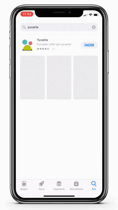 iPhone’unuzda bulunan AppStore uygulamasına girerek Yuvarla uygulamasını aratabilir sonrasında ise ”İndir” seçeneğine dokunup TouchID (parmak izi) veya FaceID (yüz tarama) teknolojisine sahip bir telefon kullanıyorsanız parmağınızı ya da yüzünüzü okutarak uygulamayı indirebilirsiniz.