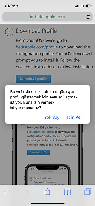 Adım 7: Diyalog ekranından İzin Ver seçeneğine dokunarak konfigürasyon profilinin yüklenmesi aşamasını tamamlayın.