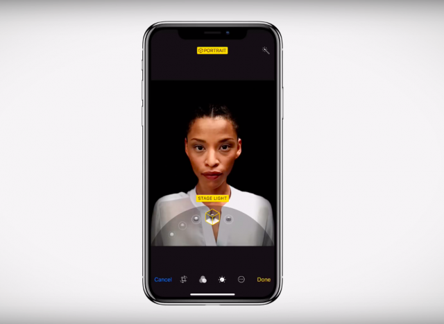Apple, iPhone X’te en popüler profesyonel stüdyo portre lenslerinden biri olan 50 mm’lik fokal lens kullanıldığına ve telefonda bulunan aydınlatma seçenekleri ile bir fotoğraf stüdyosunda yapılabileceklerin taklit edildiğine dikkat çekiyor.