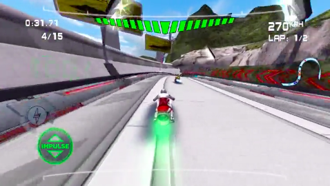 Impulse GP’de başarılı olmak, oyuncunun yeteneğine ve hassasiyetine bağlı. Oyun süper hızlı yeni nesil bisikletler eşliğinde ve rakip yarışçılarla zorlu parkurlarda fütüristik bir dünyada geçiyor.