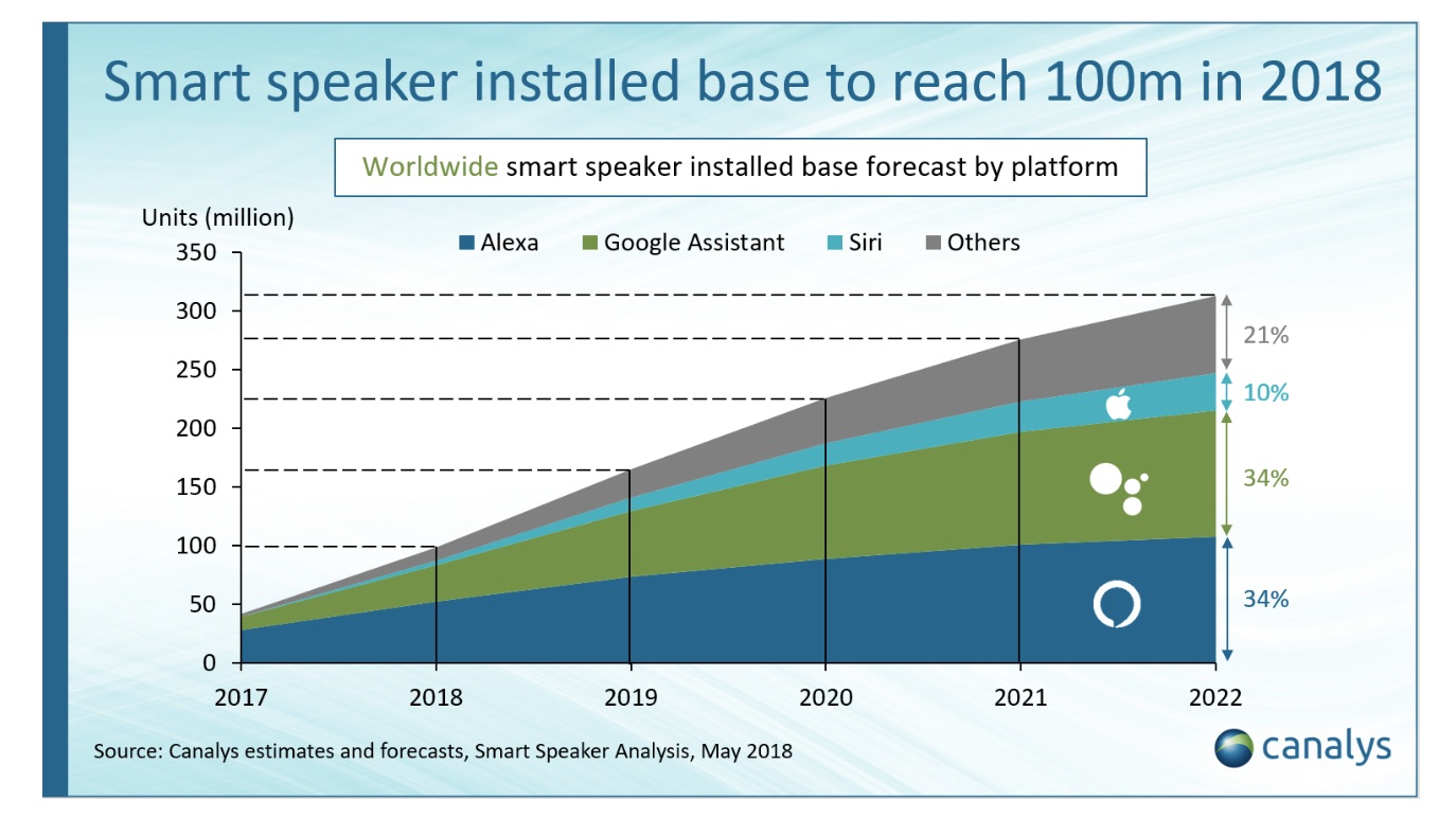 Raporda küresel pazarda yerini alan akıllı hoparlör kurulu kullanıcı sayısının 2018 yılı sonuna kadar 100 milyona yakın olacağına inanılıyor. Bu, 2017’ye kıyasla yüzde 150’lik etkileyici bir büyüme oranına karşılık geliyor.