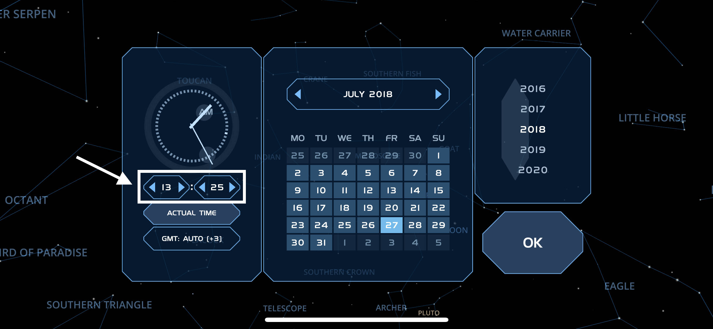 Ekran üzerindeki seçeneklerden saati ve dakikayı Kanlı Ay tutulmasının başlayacağı zamana yani 20:13’e ayarlayın.
