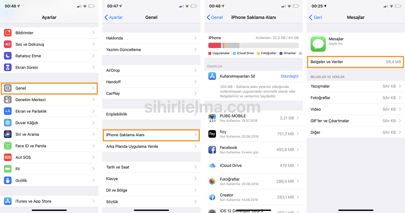 5) Uygulama Başına Saklama Alanı Kullanımını Kontrol Etme