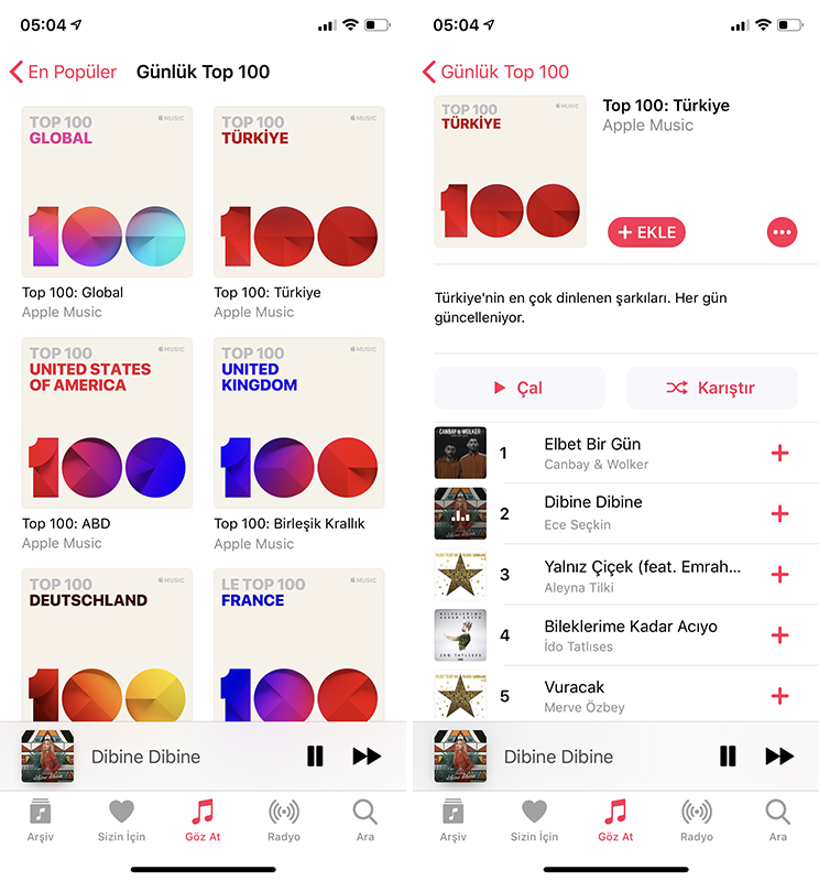 “Günlük Top 100” listesine erişmek için iOS cihazınızdan Müzik uygulamasını açmalı, Göz At sekmesine ve ardından En Popüler seçeneğine dokunmalısınız.