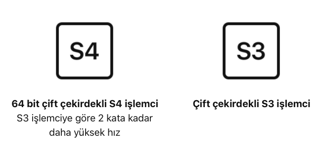 Apple, Series 4’teki S4 işlemcisinin Series 3’te bulunan S3 işlemcisine kıyasla iki kat daha hızlı olduğunu söylüyor. Yeni işlemciyle uygulamaların ve diğer işlevlerin gerçekleştirilmesi sırasında önemli bir hız farkı görülüyor.