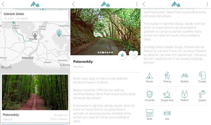 Doğaya kaçış; kamp, dağcılık, trekking, yamaç paraşütü gibi aktiviteleri takip etmenize ve bulmanıza olanak tanır. Uygulama, konumunuza veya girdiğiniz bölgeye en yakın spor aktivitelerini size detaylı olarak sunar.