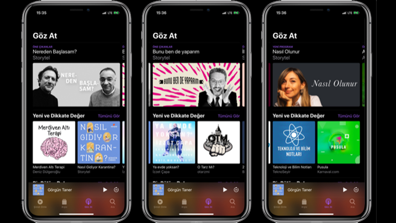 Apple cihazlardan ulaşılabilen Apple Podcast’leri arasında bilgilendirici ve eğlendirici pek çok hikaye sizleri bekliyor. Kolaylıkla alışacağınız bir kullanıcı deneyimi ile Öne Çıkan Podcast’ler, yeni ve dikkate değer yayınlar, çok takip edilen Podcast’lerin yeni bölümleriyle ilgili bilgilendirmeler sizlere ulaşıyor.