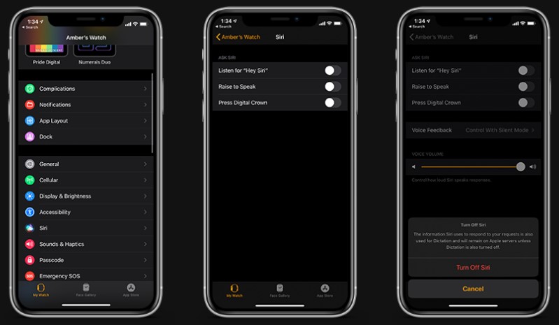 Apple Watch Siri nasıl kapatılır