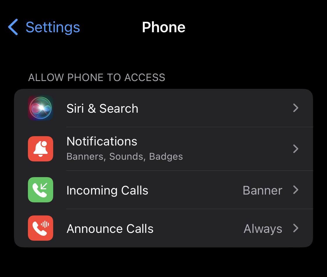 Ayarlar > Telefon altında bulunan Çağrıları Duyur özelliği için yeni bir simge var .