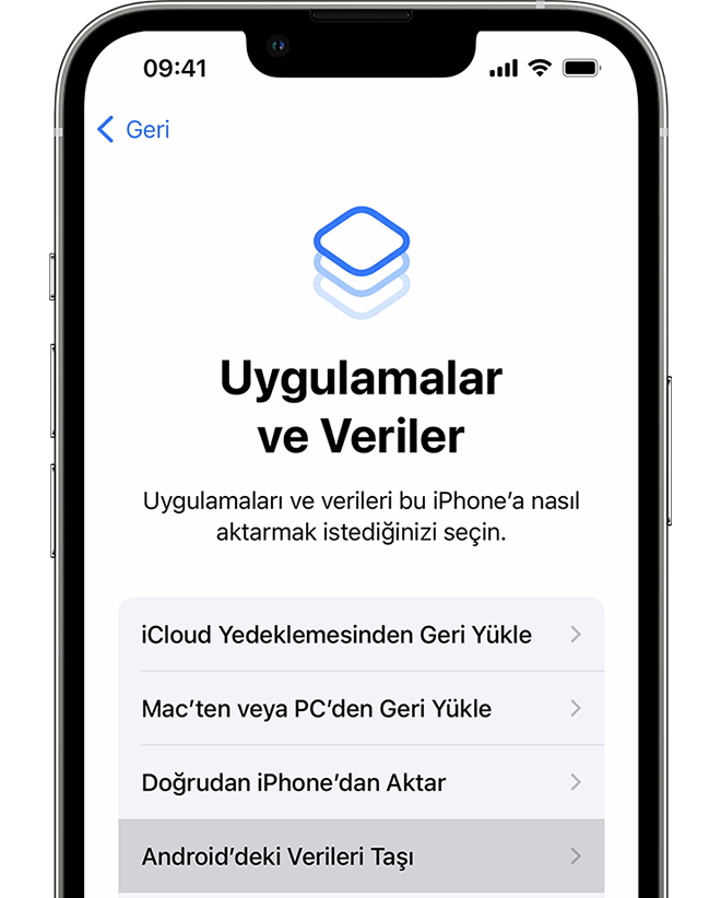 2. Verilerinizi aktaracağınız iPhone’da Android’deki Verileri Taşı seçeneğine dokunun.