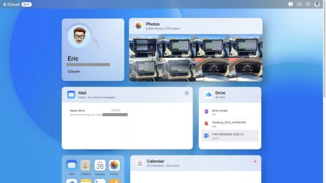 Güncellenen tasarım, mevcut iCloud tasarımından kayda değer bir farklılıktır ve Fotoğraflar, Mail, iCloud Drive, Notlar ve daha fazlası için önizlemelerle birlikte özelleştirilebilir bir ana sayfada tam kutucukları gösteriyor. Sayfanın aslında iOS widget yapısına benzediğini söyleyebiliriz.