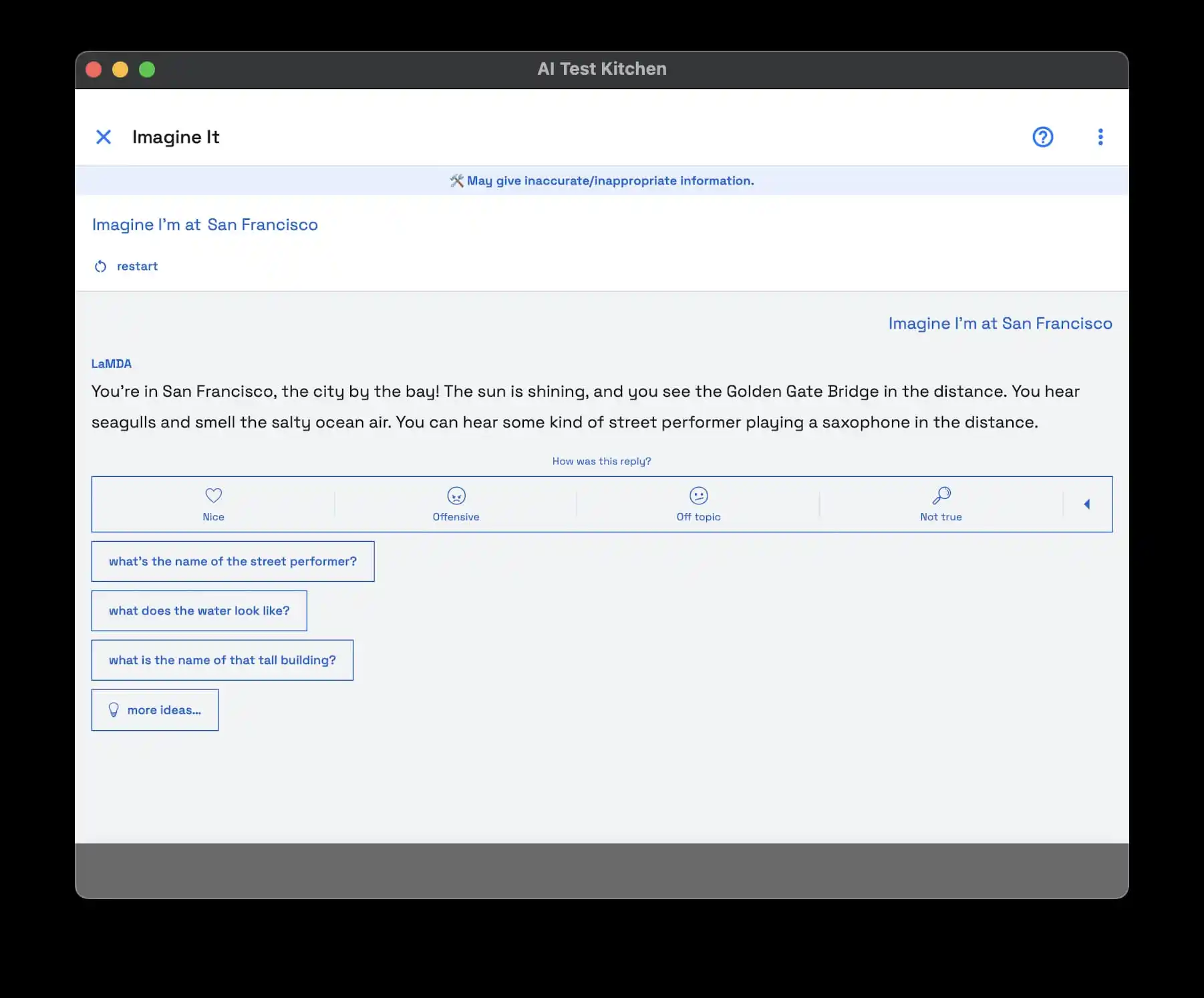 - Hayal Edin: Bir yer söyleyin, LaMDA hayal gücünüzü keşfetmeniz için yollar sunsun.