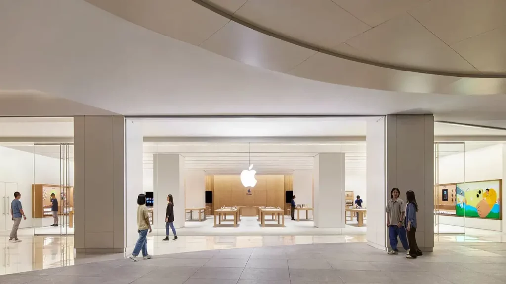 Apple’ın son açtığı mağaza tasarımı, içeri ve dışarı arasındaki geçişi mümkün olduğunca sorunsuz hale getirmek amacıyla benzer bir konsepti sürdürüyor. En yeni mağaza, Çin’in Anhui eyaletindeki Hefei şehrinde bulunan Apple MixC Hefei olarak tanıtıldı. Mağazanın dış cephesi, oldukça geniş, kavisli camlarla inşa edilmiş ve mağazaya içeriye doğal bir akış sağlamak için hiçbir kolonla bölünmemiş, böylece iç mekânla dış mekân arasındaki geçiş daha da ince bir hâl almış.